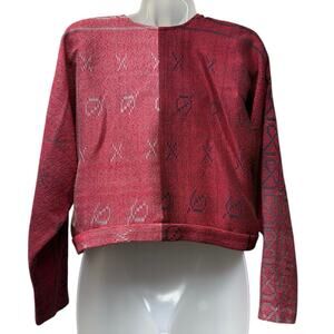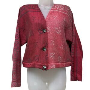 Martha H Hubbard Handwoven Jacket Cardigan Size Medium Red Blue Rare Artsy