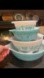 Pyrex set of 4 Vintage Amish Butterprint turquiose and white Mixing Bowls