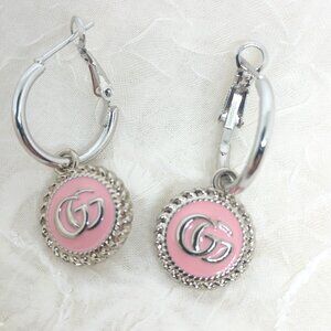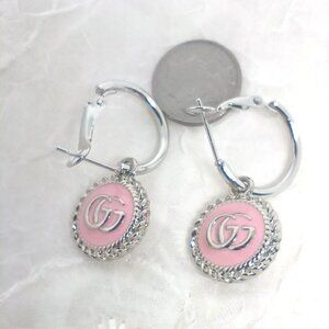 Gucci Earrings GG Logo Charm Pink & Silver