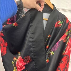 Ted Baker Luxurious Bold Floral Satiny Kimono Sleeve Women’s Robe, Sz 16/18