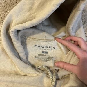 The PacSun Graphic Broken Hearts Club Hoodie is a stylish unisex pullover featuring a crew neck and long sleeves, made of comfortable cotton material in a beige color. The hoodie is accented with a hood and is ideal for the winter, fall, and spring seasons. With a regular fit and medium size, this hoodie is a great addition to any wardrobe for both men and women looking for a trendy and cozy activewear piece.