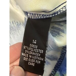This AGB Blue Yellow Floral Sheath Dress in Size 14 features a beautiful floral pattern on a stretch twill fabric, making it perfect for various occasions such as travel, parties, casual outings, and business meetings. The dress has cap sleeves, a round neckline, and a zip closure, with exposed zipper accents adding a trendy touch. The midi length and sheath style offer a flattering silhouette, while the multicolor design gives a fun and vibrant look. Easy to care for with machine washable instructions, this dress is sure to become a versatile staple in any woman's wardrobe.