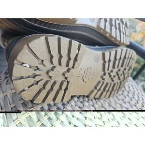 These Vintage Sorel Boots in Men's size 12 are a stylish and functional choice for winter in Canada. The brown leather boots feature a lace-up closure and a round toe shape, perfect for casual wear or workwear. The mid-calf snow boots are lined with wool and have a leather outsole, making them ideal for cold weather travel. The colorblock pattern and USA-themed design add a touch of retro charm to your winter wardrobe. Made in the United States, these boots offer both quality and style for any outdoor adventure.