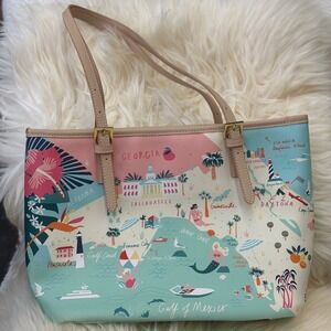 This rare & retired Florida tote has the signature golden Spartina logo & is perfect for days of adventure shopping around town or relaxing on the beach. It features an open top design with a zip closure.