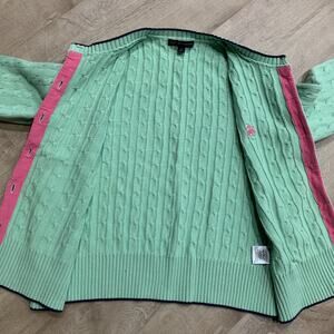 Brooks Brothers 346 Cardigan Cable Knit Sweater Women's XL Contrast Green Pink
