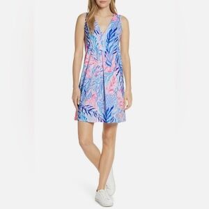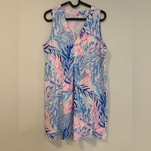 Lilly Pulitzer AMINA SWING DRESS Crew Blue Tint Kaleidoscope Coral M