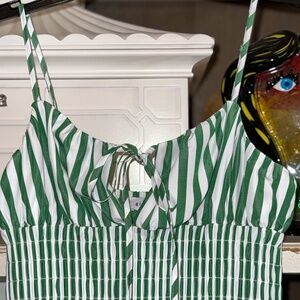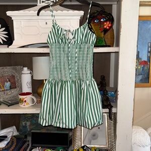 Gianni Bini Ellie green striped smocked drop waist bubble hem dress Small S