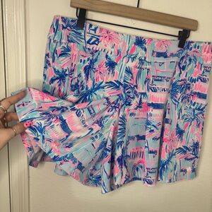 Lilly Pulitzer Frazer Ravello-Perfect Match Culotte Pleated Shorts Blue & Pink
