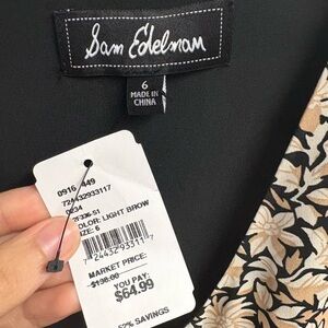 NWT San Edelman Beige/Black Ditsy Floral Midi Dress W/ Puff Sleeves Size 6