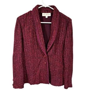 St John Red Knit Trim Button Blazer Jacket Red-Multi Size 6