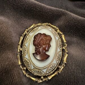 Vintage Cameo Brooch with Gold-toned Frame