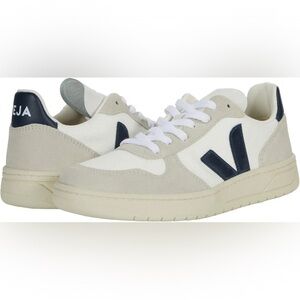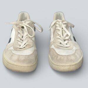 Classic white mesh upper with suede overlays and navy “V” logo accents. Lace-up front with round toe silhouette and perforated detailing. Logo at heel. Comfortable textile lining with insole made of expanded polyurethane and organic cotton. Sole crafted from wild Amazonian rubber. Made in Brazil.