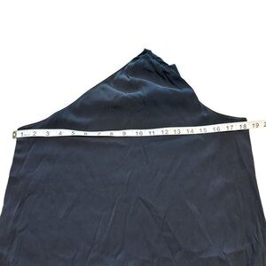 Designer Ramy Brooks One shoulder shorts jumper romper Soft silk material Blousy loose fit Black with white trim 95% silk 5% Spandex Elastic stretchy waist Side zipper closureTwo pockets in front.