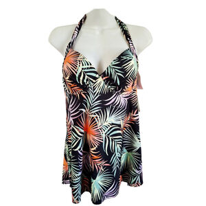 Leilani Black nwt Palm Hawaiian aloha Halter One Piece Swimsuit Size 12