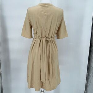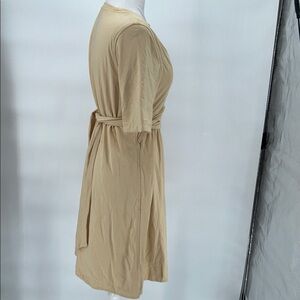 This elegant beige wrap dress offers a sophisticated look for any occasion. Its soft fabric and flattering design make it a must-have in your wardrobe.