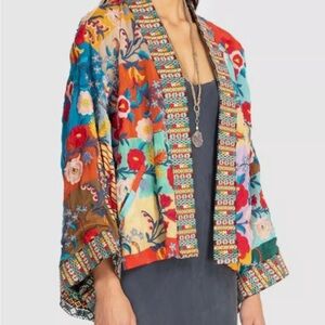 JOHNNY WAS Embroidered multicolored Reversible Kimono Jacket size Large