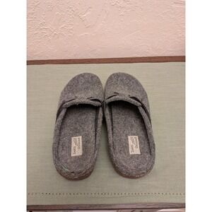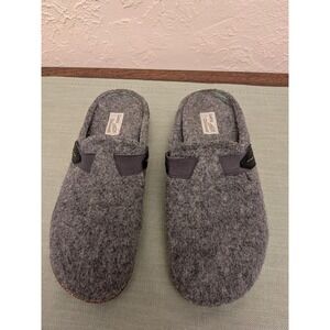 Please see pics for wear. Earth Origins Jenna clogs feature a cozy grey felted fabric upper with a comfortable mule silhouette. These slip-on shoes are designed with a decorative side strap and buckle detail, set atop a supportive cork-infused midsole and a durable rubber outsole for reliable traction. The interior includes a removable cushioned footbed, making them ideal for all-day indoor or outdoor wear.
