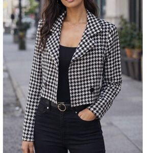 Houndstooth Print Single Button Crop Blazer Vintage