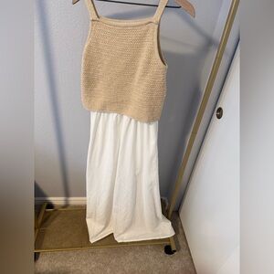 Bohme Chic White Maxi Dress with Pockets Beach Vacation Size M