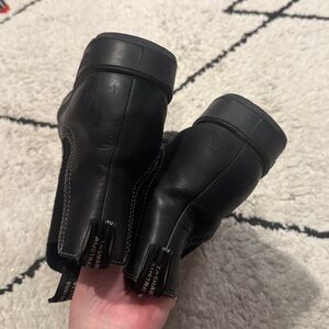 Stylish black leather ankle boots with elastic sides. Perfect for casual wear. good overall condition no rips some marks and scuffs as shown in photos