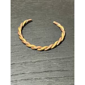 Artisan-style twisted cuff bracelet featuring a mixed metal look with warm brass and copper tones. The open cuff design allows for easy wear and slight adjustability. Marked “B3,” which appears to be a maker or production mark. Metal content is unmarked and believed to be brass or mixed metals based on patina and weight.