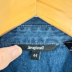 Desigual Denim Shirt Dress Embroidered Studded Belted Midi Western Size 44