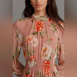 Anthropologie Somerset Long Sleeve Mock Neck Chiffon Pink Floral Maxi Dress