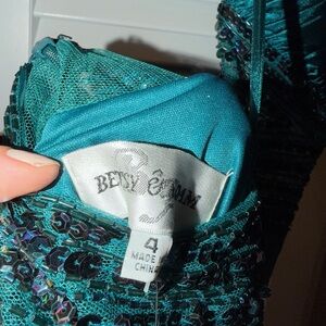 Betsy & Adam Teal Halter Sz. 4 Formal Dress