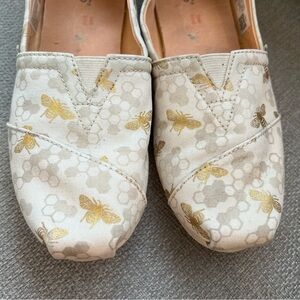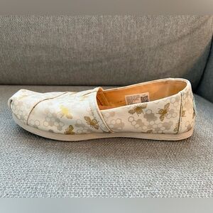 TOMS Alpargata Cream and Gold Bumble Bee Honeycomb Design Casual Canvas Flats Size 6.5