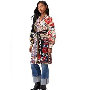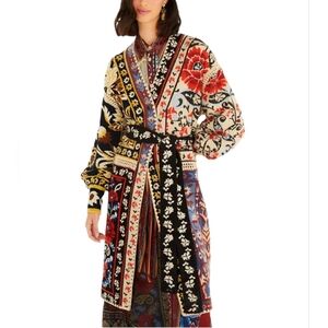 Farm Rio Mixed Flower Print Patchwork Knit Midi Cardigan