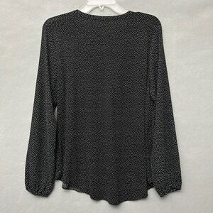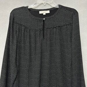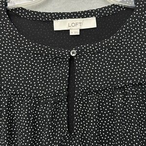 LOFT Black White Micro Polka Dot Blouse M Long Sleeve Business Casual Career