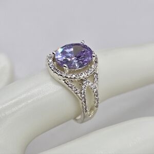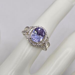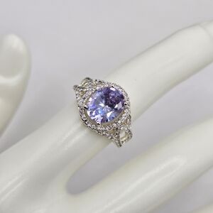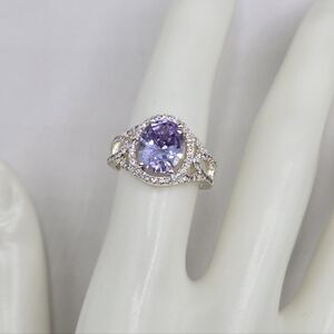 Swarovski Crystal Elements Silver Statement Ring Light Amethyst Purple Size 7