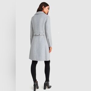 This is a great style Belle & Bloom Grey Wool Blend Moto Coat, merging the sleek styling of a motorcycle jacket cut in a fitted, knee length coat, this coat is decked out with all the hardware details. Versatile across seasons and occasions, pairing perfectly with both workwear or a night out.