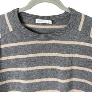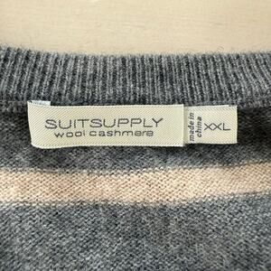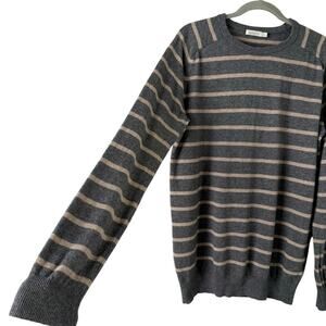 Suitsupply Wool Cashmere Striped Crewneck Pullover Sweater Gray Beige, Size XXL
