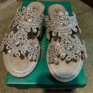 🔵LAUREN LORRAINE Silver Embellished Women's Sandals