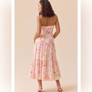 Brand new with tag Altar’d State Shelley dress featuring a romantic soft pink floral print with delicate green and peach tones. This breezy, feminine dress features a flattering bodice-style top, adjustable spaghetti straps, and a flowing tiered skirt that moves beautifully with every step.