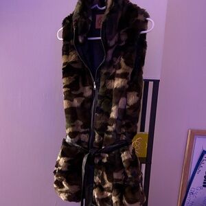 Camouflage Faux Fur Vest with Belt