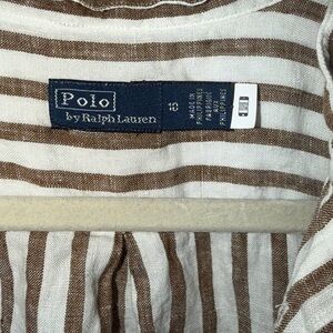 Polo Ralph Lauren Linen Tie Front Striped Blouse Brown White Size 10