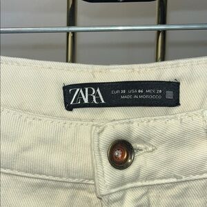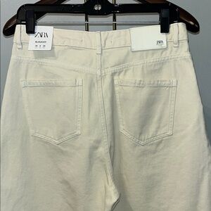 Zara Slouchy Jeans Black Label High Waist Pleated Cream Cropped - Size 6 NWT