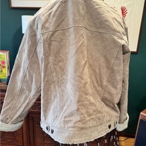 Austin Clothing Company tan suede lined jacket with sherpa collar and sleeves
