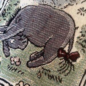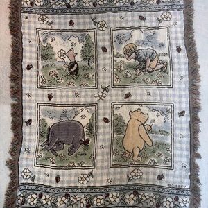 Charming Disney tapestry blanket featuring Winnie the Pooh characters. Soft and cozy. Crib or lap size blanket. Some minor thread pulls to the weaving. No stains. Made in USA. No rips