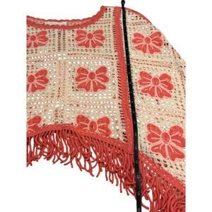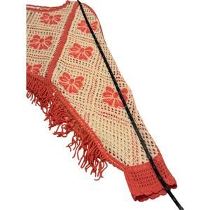 NWT House of Harlow Nicole Richie Pink White Bow Crochet Poncho Sweater Fringe