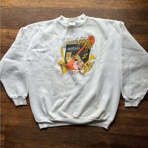 Men's Vintage Tultex Sweatshirt White San Diego Jazz Fest XL PILLING Crew Y2K. Cotton blend.