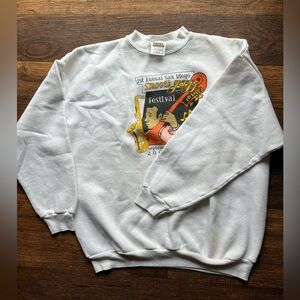 Men's Vintage Tultex Sweatshirt White San Diego Jazz Fest XL PILLING Crew Y2K