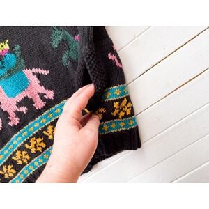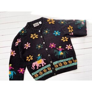 black embroidered sweater 80s 90s vintage Forenza elephant horse floral cardigan