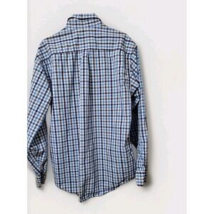 The VINEYARD VINES Button-Down Shirt in men's small size features a classic fit and is made of cotton fabric with a blue plaid pattern. This versatile shirt is suitable for various occasions including travel, casual outings, formal events, workwear, and business meetings. The shirt has a collared neckline, button-down style, long sleeves, and is easy to care for as it is machine washable. With its untucked design and stretch fabric, this shirt is perfect for all seasons and embodies a designer, beach, marine, nautical, casual, and classic theme.