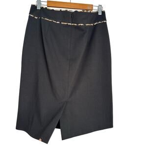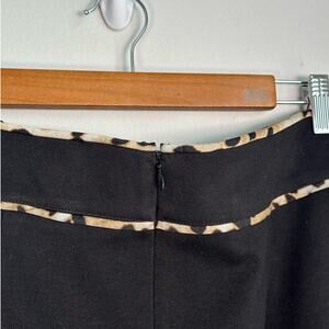 Calvin Klein Black Leopard Print Accent Midi Skirt Women's Size 8