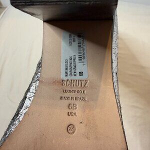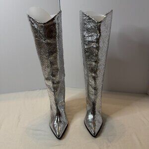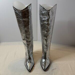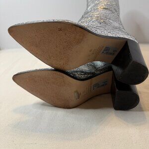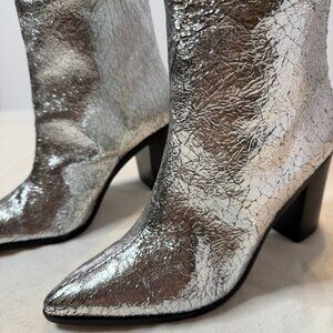 Schutz Maryana Block Crackled Leather Boot Silver Size 6