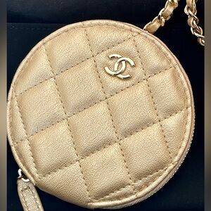 NEW CHANEL MATELASSE COCO MARK YEAR CHAMPAGNE GOLD LAMBSKIN COIN/AIRPODS CASE