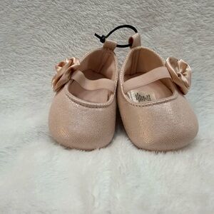 Baby Gap Shimmer Pink Mary Jane Ballet Crib Shoes 3-6M EUC Floral Accent